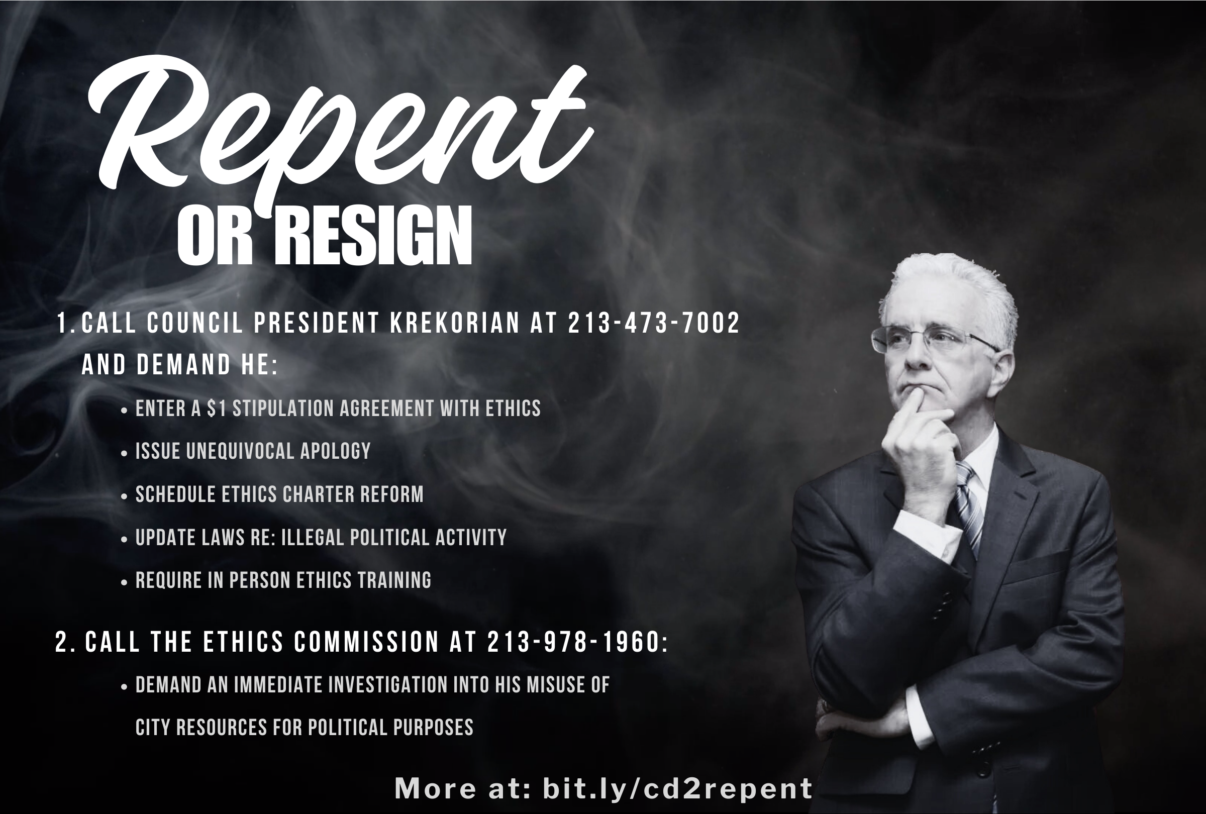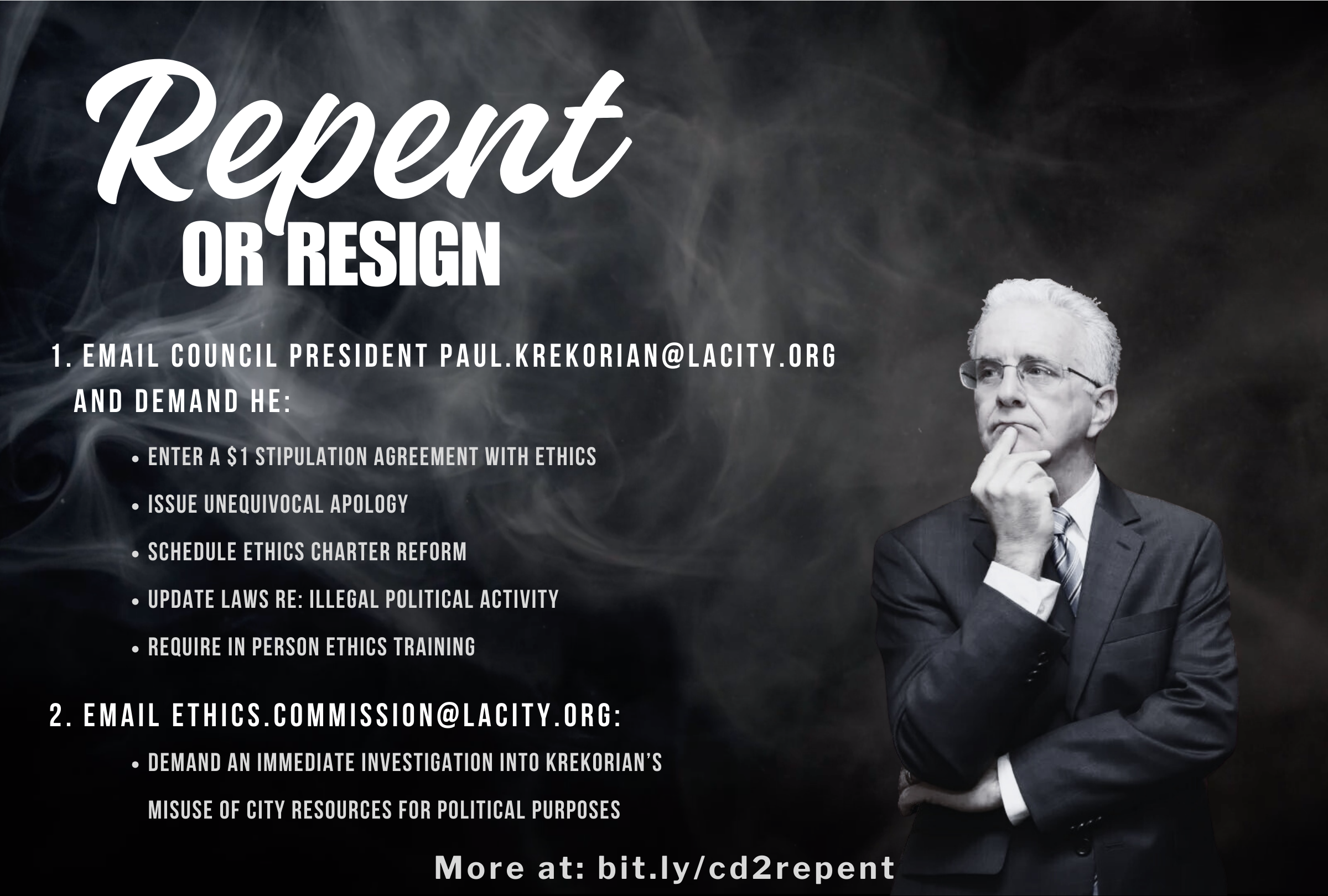 Sign-on to letter demanding Council President Krekorian repent or resign as Council President